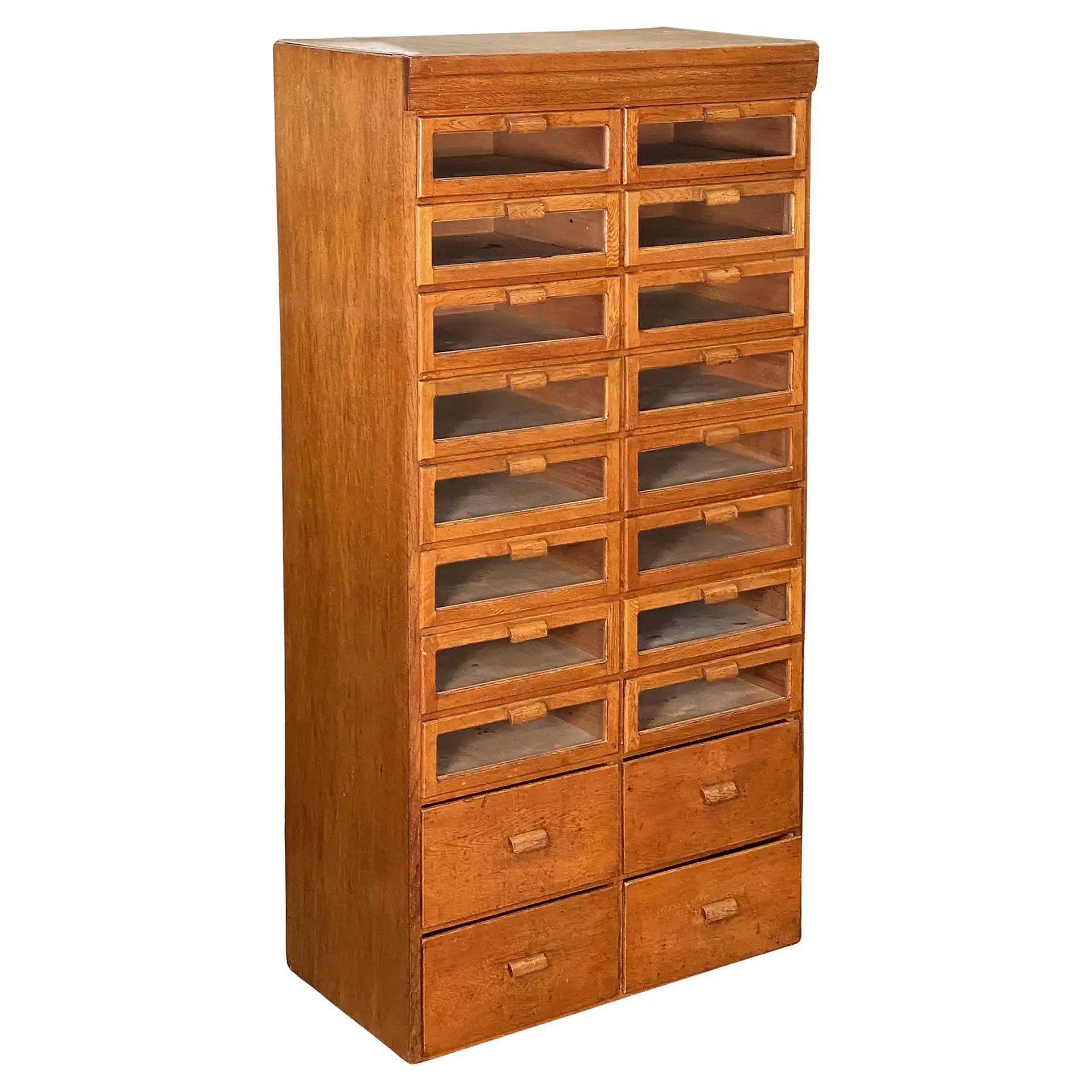 (16) glass-fronted drawers over four cupboard style drawers - (20) drawers total.