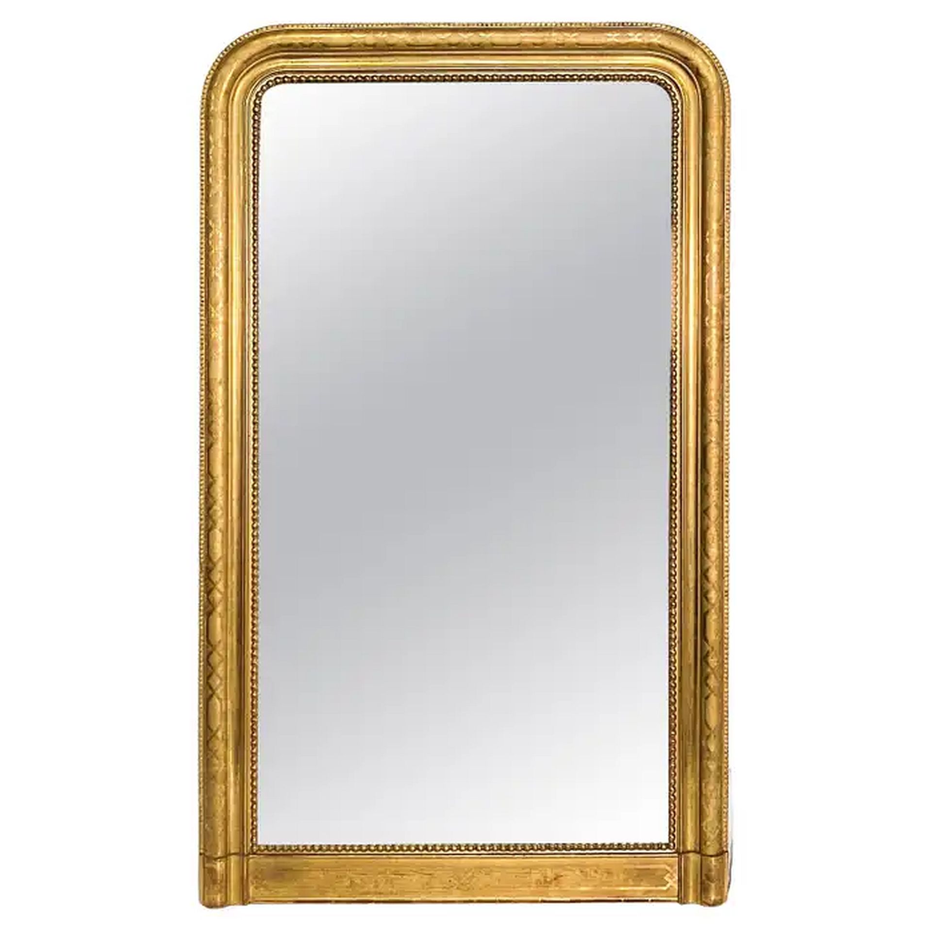 A fine tall French arch top wall or over-mantle mirror or floor standing mirror. from the Louis Philippe period, circa 1860.