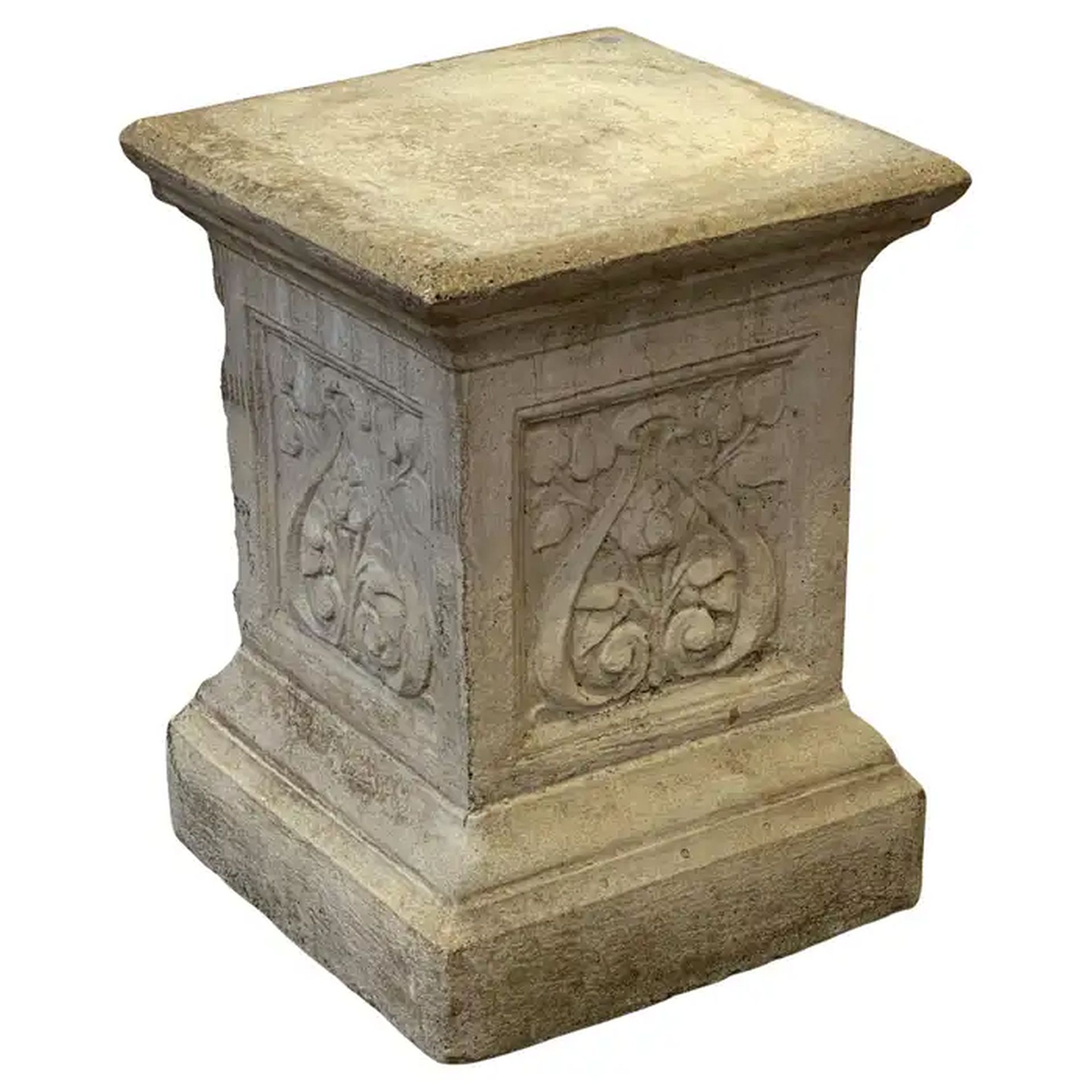English Garden Stone Pedestal or Plinth with Foliate Motif